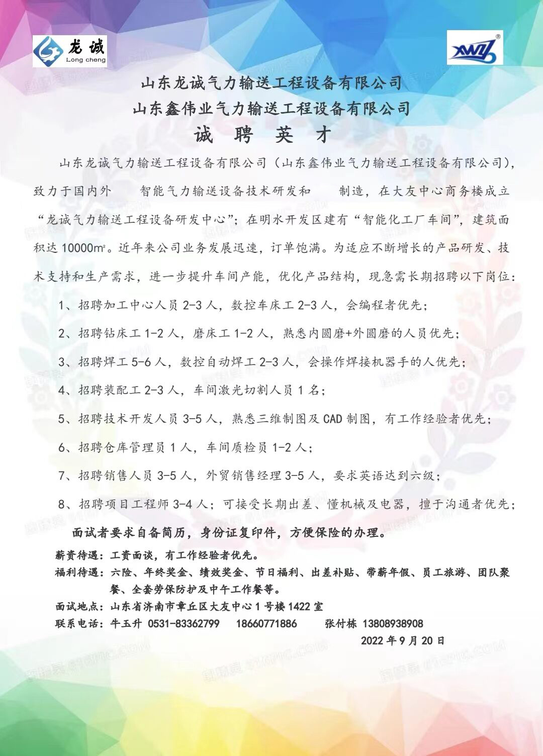 誠聘英才-山東午夜婷婷福利氣力午夜福利无码视频工程設備有限公司